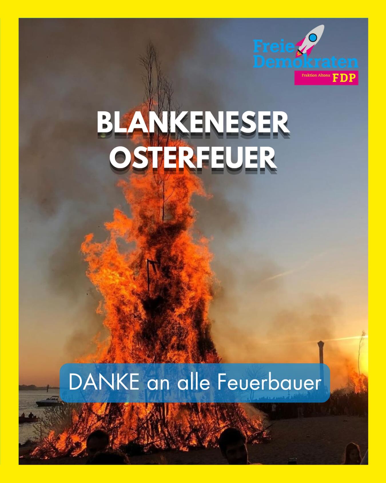 Blankeneser Osterfeuer 🔥🐣🌊 Ein riesiges DANKE an alle Feuerbauer, die mit so viel Herzblut, Organisation und Muskelkraft diese besondere Tradition am Leben erhalten. 🙌💪🪵 Ohne euch wäre Blankenese einfach nicht dasselbe! Die finale Entscheidung, ob das Feuer unter Berücksichtigung von Windrichtung und -stärke aus Sicherheitsgründen entzündet werden darf, trifft die Leitung des Bezirks. 🌬️⚖️🔥 Für den neuen Bezirksamtsleiter ist es diesmal eine Premiere. Jetzt heißt es Daumen drücken, dass die Bedingungen stimmen und das Osterfeuer wie geplant stattfinden kann ✊🍀✨ #Blankenese #Osterfeuer #Tradition #Elbstrand #HamburgLiebe